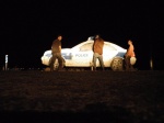 The color of the police uniform is green (dark green). The traffic policemen wear a white hat. The color of the police cars is dark green, and the traffic policemen cars are white with a dark strip on the car body. In case of an emergency, one can go to the nearest police station or contact 110.
